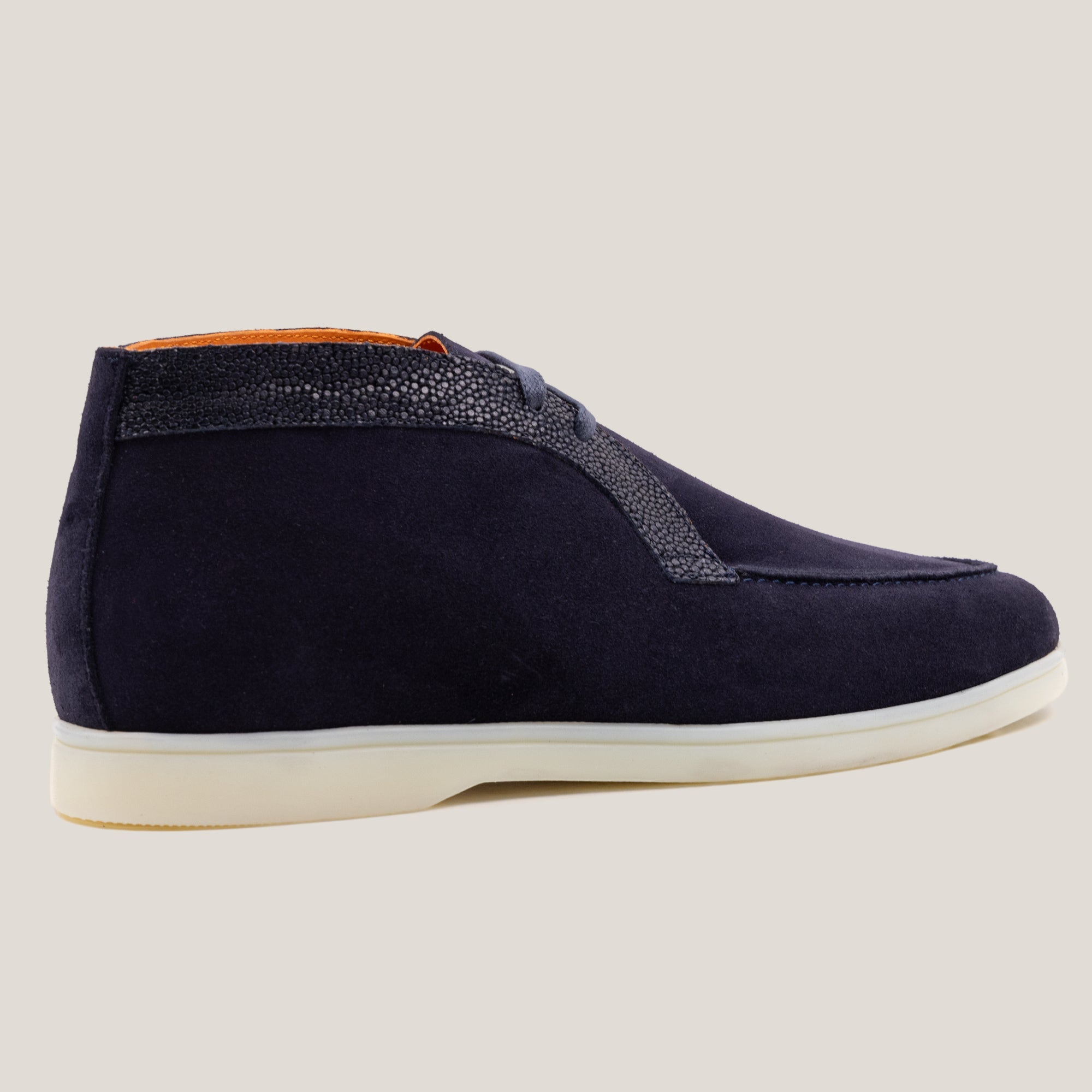 Originally derived from formal wear, the Chukka Boot has evolved into a versatile footwear option for smart casual and urban environments. The Lecco Dark Navy Suede Chukka Boots offer the perfect blend of traditional craftsmanship and modern comfort, suitable for various occasions.