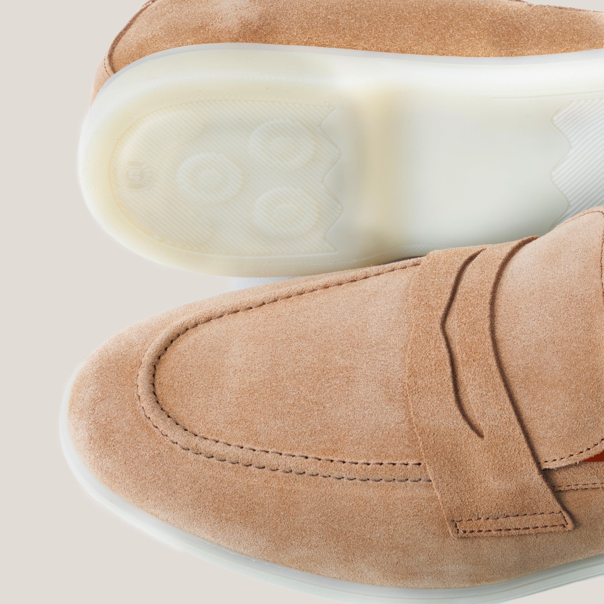 The Portofino Light Beige (Opera) Suede Penny Loafers exemplify handcrafted luxury without the luxury price tag. These Smart Luxury Loafers, featuring a light beige colour, are meticulously handmade in our atelier using responsibly sourced Italian calf suede.