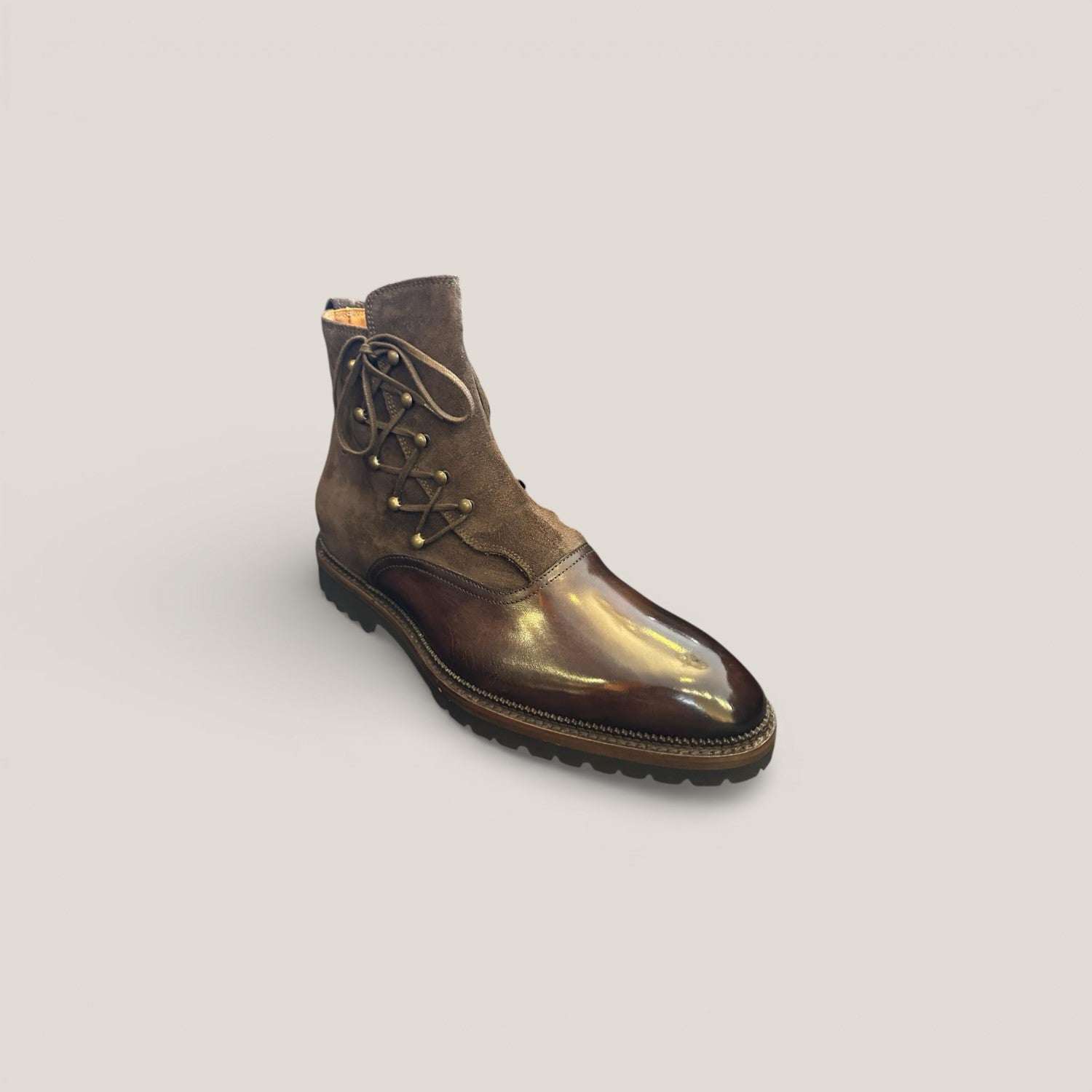 • Ankle Boot in Suede with Polsihed Calf Leather Toe